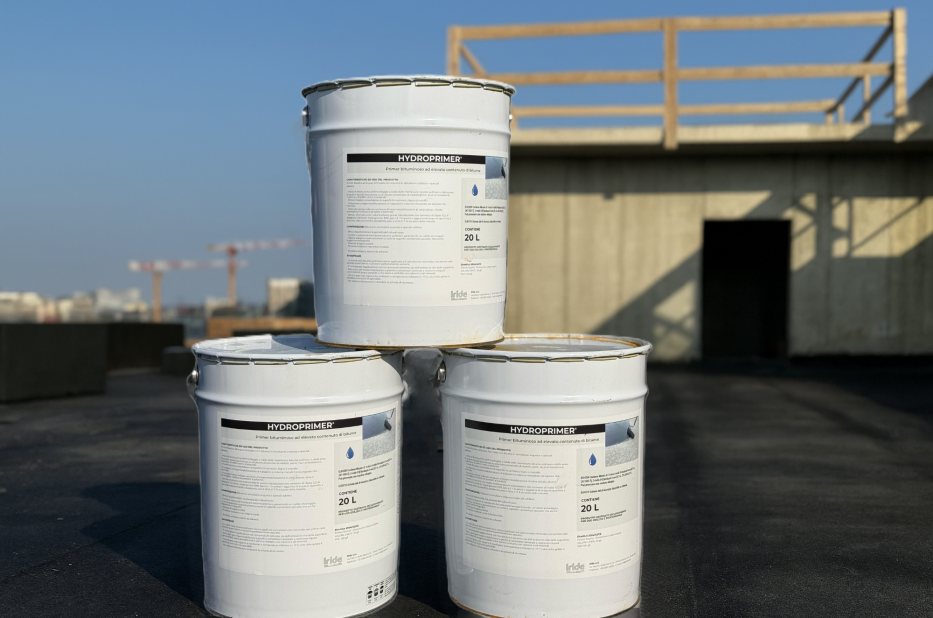 IRIDE HYDROPRIMER is a water-based primer formulated with bitumen in aqueous emulsion and special additives. It is designed to be used as a preparatory base in various waterproofing and protection processes, ensuring secure adhesion and a well-consolidated surface for subsequent applications.